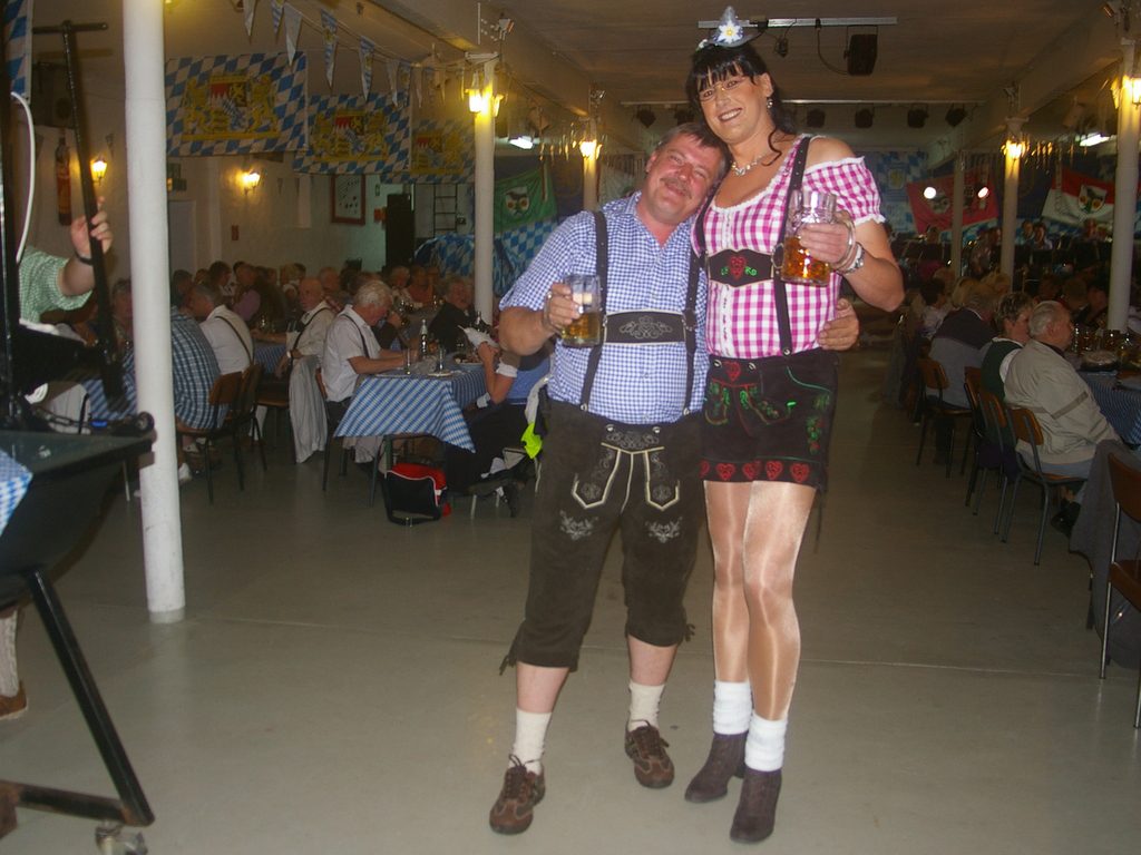 kurze Lederhose und ne knappe Bluse die den Blick auf ein großartiges Dekolleté