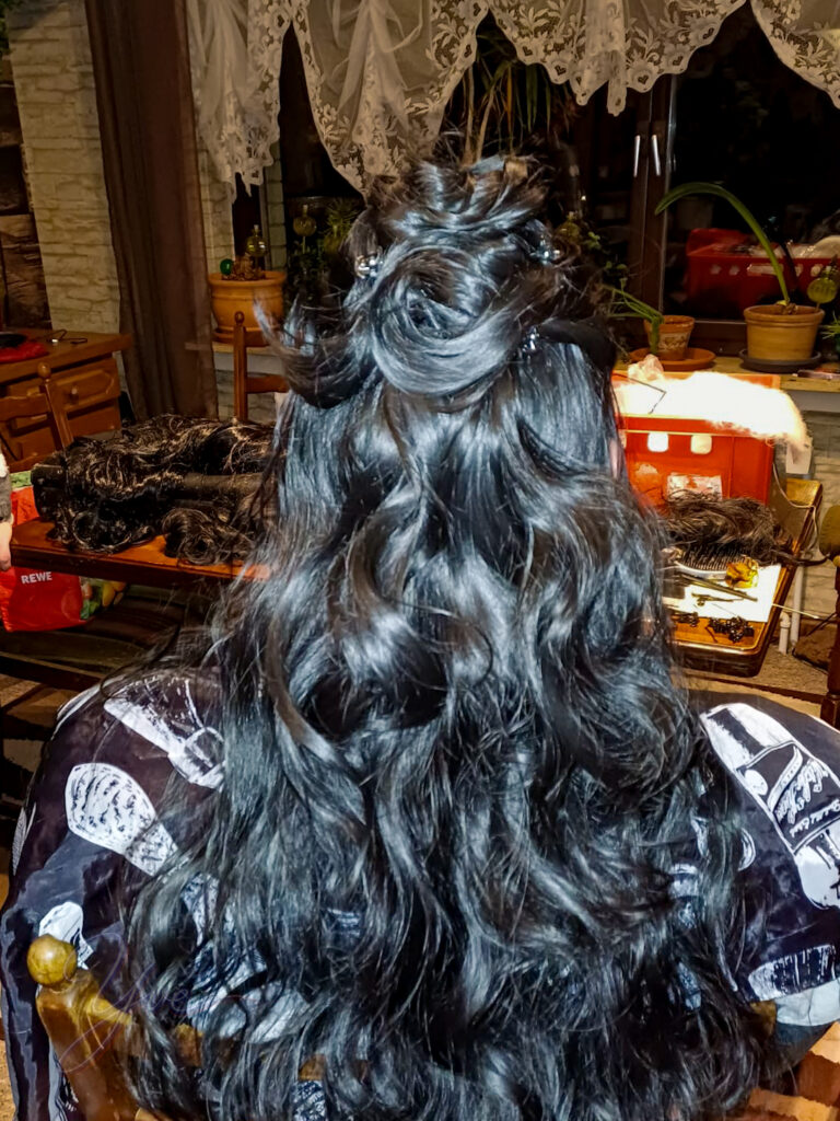 Und weil Kunsthaar ungefähr so gut umfrisiert werden kann wie ein störrischer Gartenzwerg, habe ich mein eigenes System entwickelt: