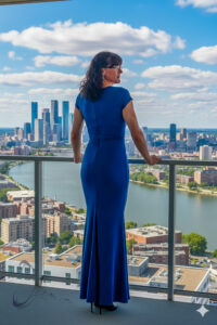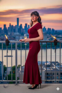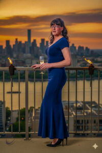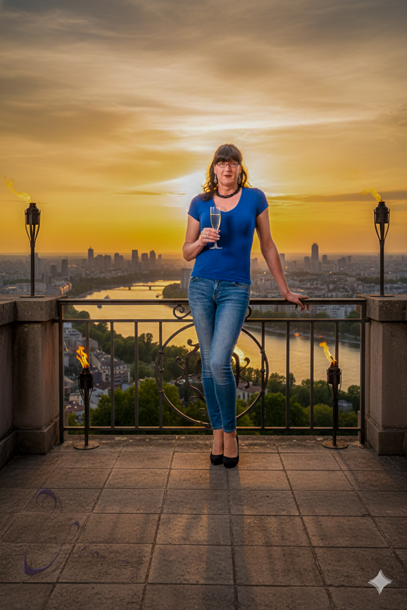 Ein ausgedachter Ort und Yve in verschiedenen Outfits